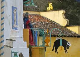 Portmeirion, Wales is not where they make the eponymous Portmeirion Pottery. The pottery is made in Stoke-on-Trent. Portmeirion is a village designed, built and funded by English-born Welshman Sir Clough Williams-Ellis. Sir Clough, architecture school drop out, acquired the 170-acre estuary fronted land in Gwynedd, Penrhydeudraeth (go ahead, American friends, twist your tongues around that one) in 1925 for just under 5000 GBP, and built his fantasy village.