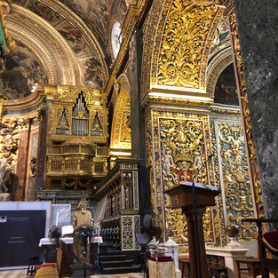 "This building, which housed the Knights of the Templar of Malta and its armoury, was built in the Austere Mannerist style. The interiors were later redecorated in 1818 by the British in the Neoclassical style, which means, in other words, everything was painted gold."