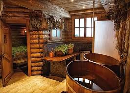 A traditional Russian banya will be a wooden structure lined with wooden benches. A log fire will heat water for steam and hot air. While a typical steam room temperature is up to 120 degrees Fahrenheit, Russian banyas are 160 to 170 degrees Fahrenheit.